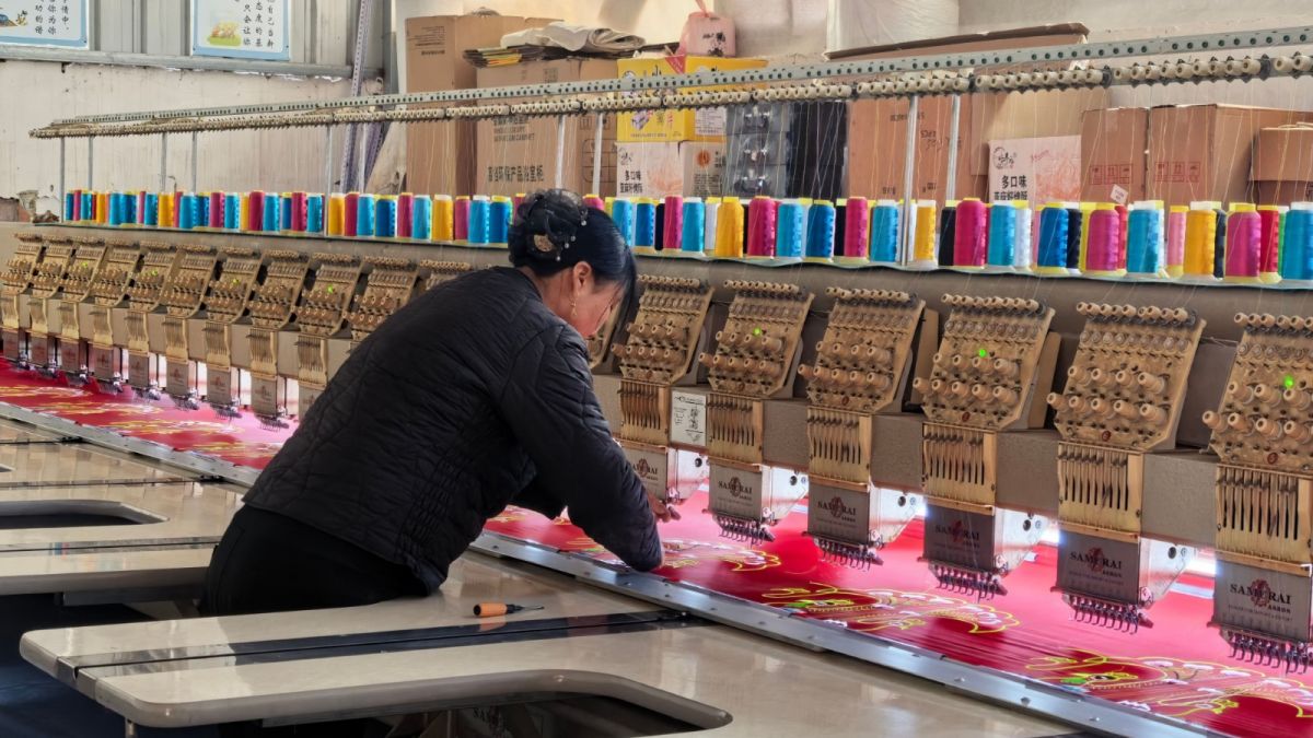 馮芳紅的這番話,道出了眾多村民的心聲。工廠推行的“集中就業(yè)+居家靈活就業(yè)”相結(jié)合的模式,讓員工可以根據(jù)自家農(nóng)事和生活節(jié)奏自由安排工作時間。特別是“居家就業(yè)”模式,工人可將刺繡半成品拿回家中進行縫合,完成后按件計酬。這種人性化的管理,真正實現(xiàn)了“灶頭、田頭、炕頭”與“生產(chǎn)線”的無縫銜接,讓增收致富與照顧家庭不再是非此即彼的選擇題。